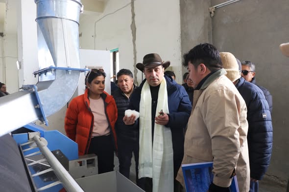 During his visit to the Pashmina Dehairing Plant in Leh, the Chief Secretary reviewed the operational status of the facility, which plays a vital role in strengthening the pashmina value chain in Ladakh. Officials briefed him on the dehairing process, production capacity, quality control mechanisms, and the impact of the plant on local pashmina goat herders and artisans. Sh. Ashish Kundra emphasized the need to ensure maximum utilization of the facility, adoption of modern technology, and strict adherence to quality standards to enhance the global competitiveness of Ladakh’s pashmina products. He also stressed the importance of linking the plant with cooperatives and local producers to ensure direct economic benefits reach pastoral communities.