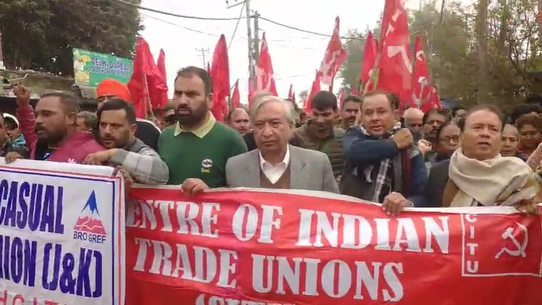 The rally, led by MLA and State CITU President M.Y. Tarigami, began at Maharaja Hari Singh Park, passed through Dogra Chowk and Gumat, and culminated at Indira Chowk.