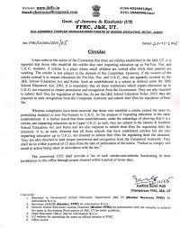 Srinagar, Nov 21: The Fee Fixation and Regulation Committee (FFRC) of Jammu and Kashmir has issued a directive to all crèche-cum-schools in the Union Territory, asking them to immediately obtain mandatory permissions and submit their fee structures for regulation.