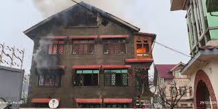 Srinagar, Dec 29 : A three-storied residential house at Umar Colony, Lal Bazar, was completely engulfed in flames on Friday morning, officials said.
