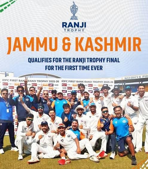 J&K , Feb 18 : Jammu and Kashmir created history by reaching the Ranji Trophy final for the first time in their 67-year history, defeating two-time former champions Bengal by six wickets in the semifinal at Kalyani on Wednesday.